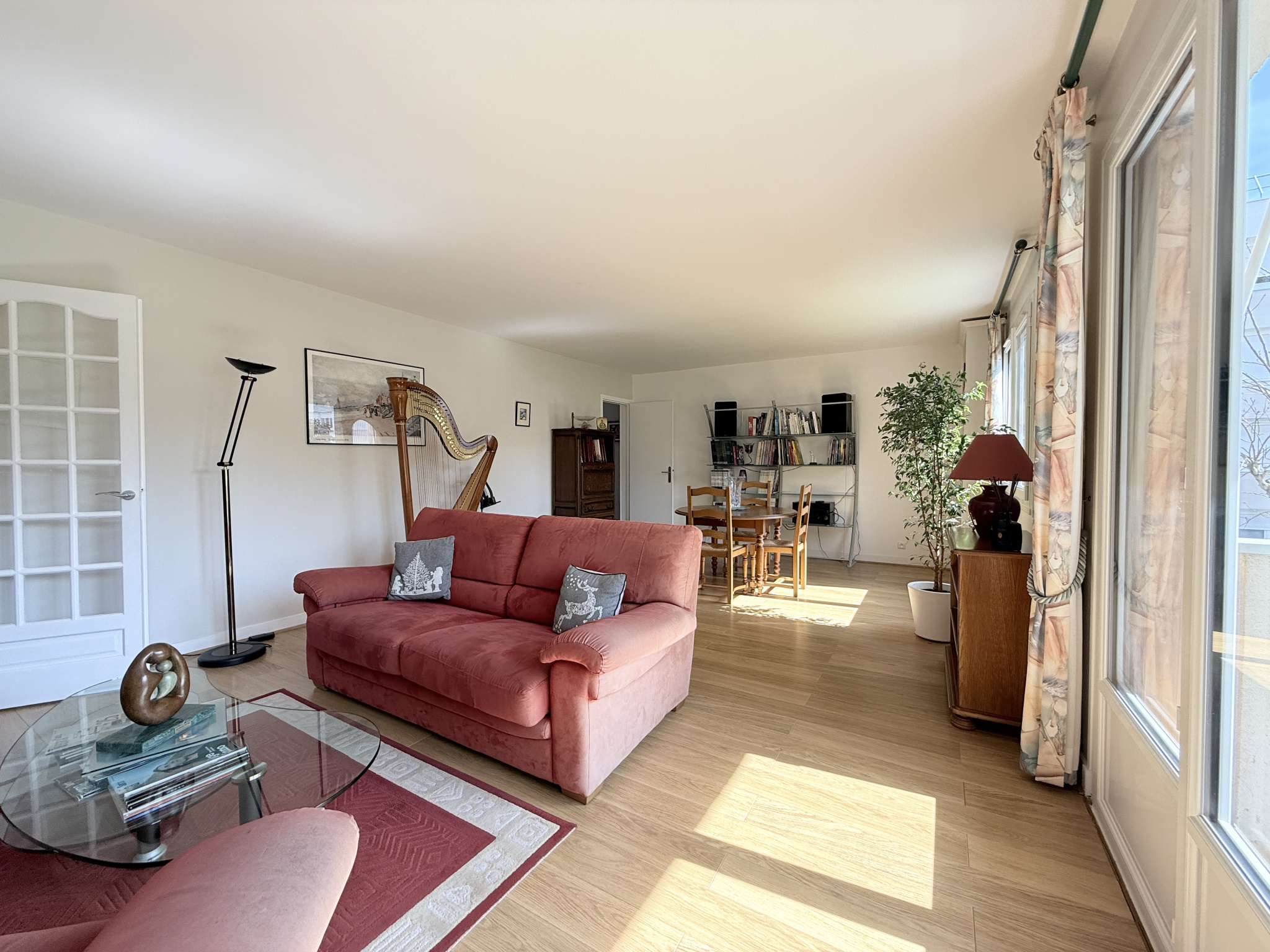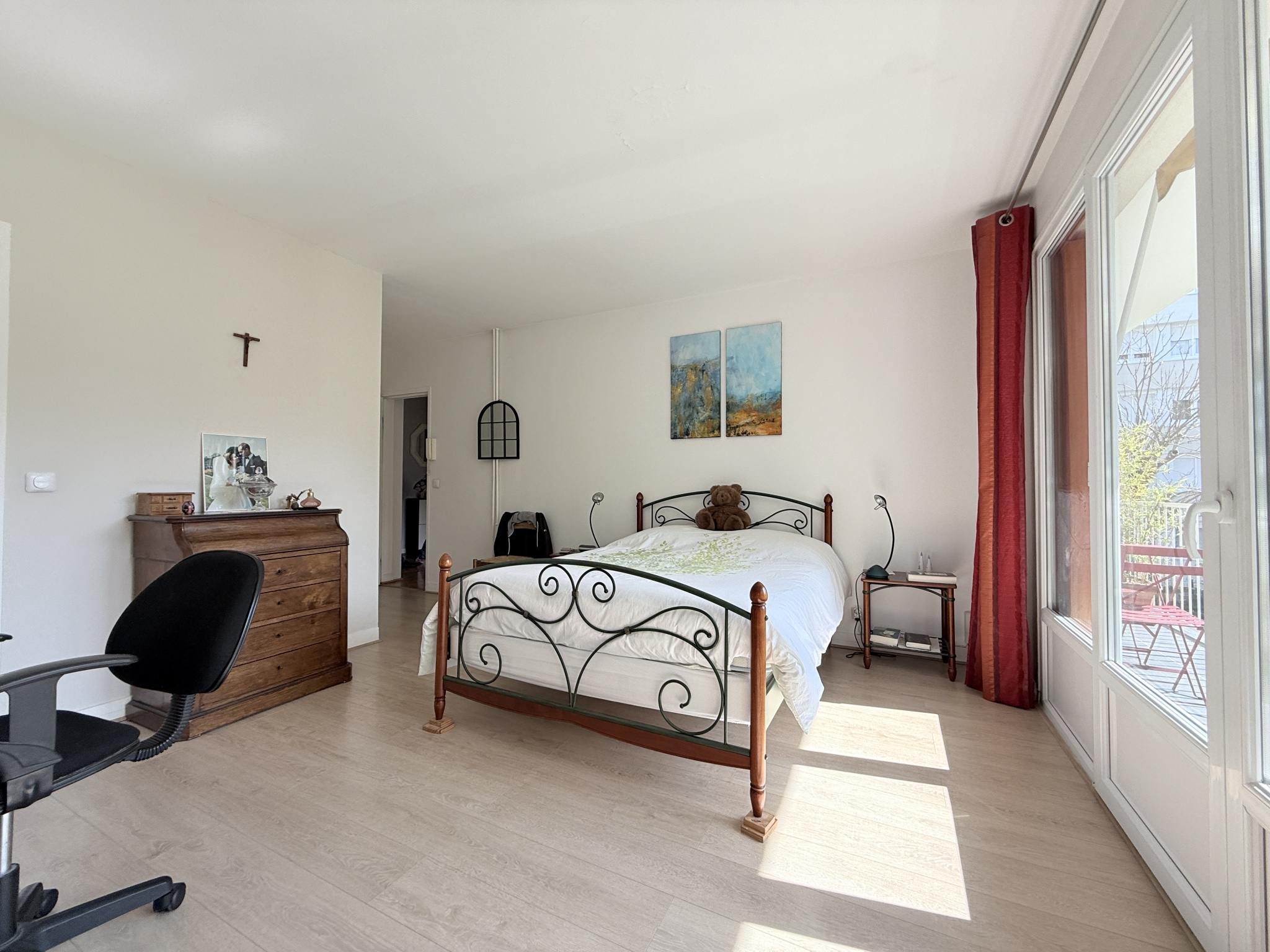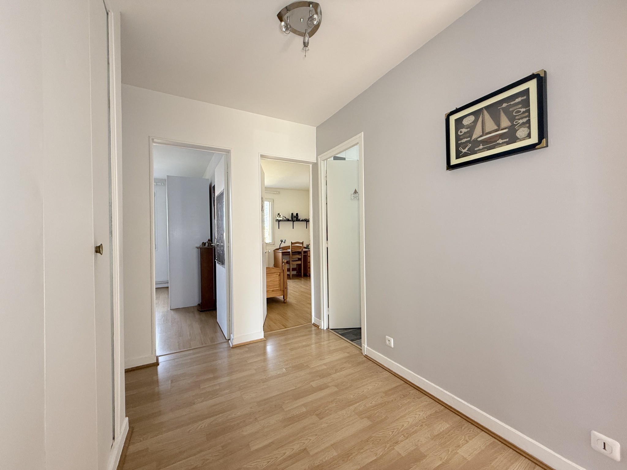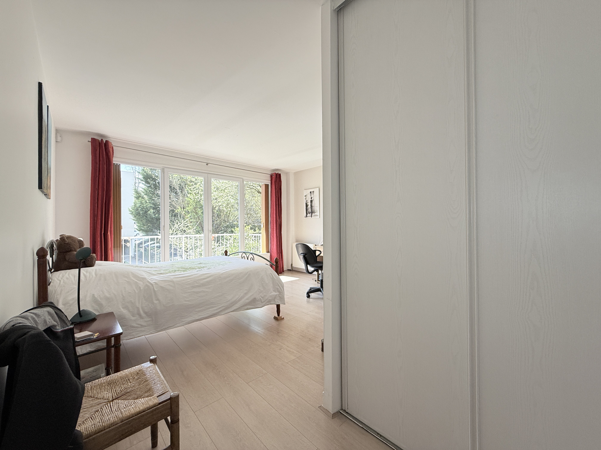 Salle de bain et salle de douche. L’appartement très lumineux est entièrement parqueté sauf dans les pièces humides, la peinture est soignée. Le bien est très calme, il profite d’un jardin paysager en fond de parcelle de la copropriété, idéal pour les jeux des enfants. Deux places de parking en sous-sol , côte à côte, et une cave pour le confort.