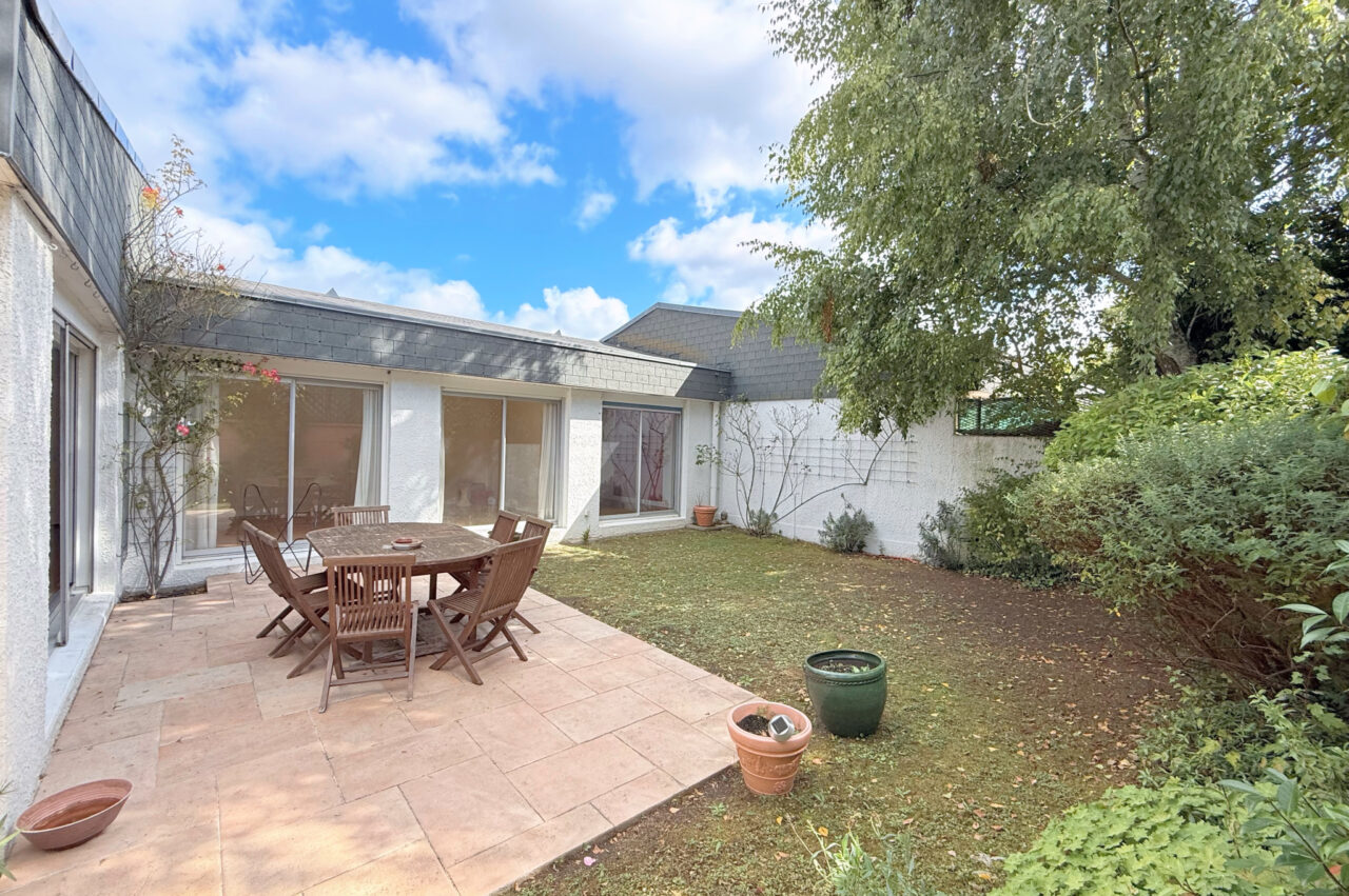 L’Agence de l’Empereur vous présente cette agréable et lumineuse maison avec jardin, entièrement de plain-pied, 4 chambres, 121 m2 Carrez, au sein du hameau de Bois-Préau, un domaine en copropriété d’une quarantaine de maisons. Une entrée, un chaleureux espace de vie/séjour de 42,5 m2 donnant sur la terrasse et le jardin par trois baies vitrées orientées sud et est. Une cuisine d’environ 10 m2, ouverte sur le séjour, créant un espace de vie total d’environ 53 m2. Trois chambres orientées sud, avec accès au jardin, se partagent une salle d’eau avec commodités. Une quatrième chambre, suite parentale de 18 m2, avec salle de bains et commodités. Jardin plat, environnement calme et sans vis-à-vis. Un garage de 33,70 m2, pouvant en partie être aménagé en bureau attenant au séjour. Possibilité de stationner 2 à 3 voitures à l’extérieur, devant la maison. Les établissements scolaires publics et privés réputés (George Sand, Jules Verne, Richelieu) sont à proximité, tout comme les établissements privés Passy Buzenval, Montessori et Daniélou. Les commerces de bouche sont accessibles à 6 minutes à pied. Forêt de Saint-Cucufa, le parc de Bois-Préau et le centre-ville de Rueil-Malmaison (à environ 14 minutes à pied). Chauffage et production d’eau chaude individuels électriques. Nouveau calcul du DPE qui changera la note de E à D au 1er janvier 2026.